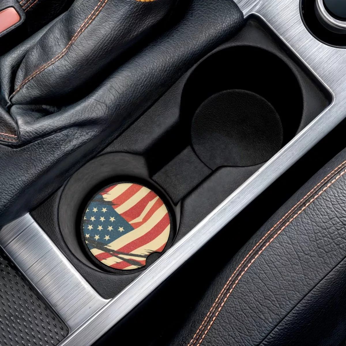 Crafted from natural soapstone, this USA Pride Car Coaster absorbs condensation and spills, keeping your cup holder dry.