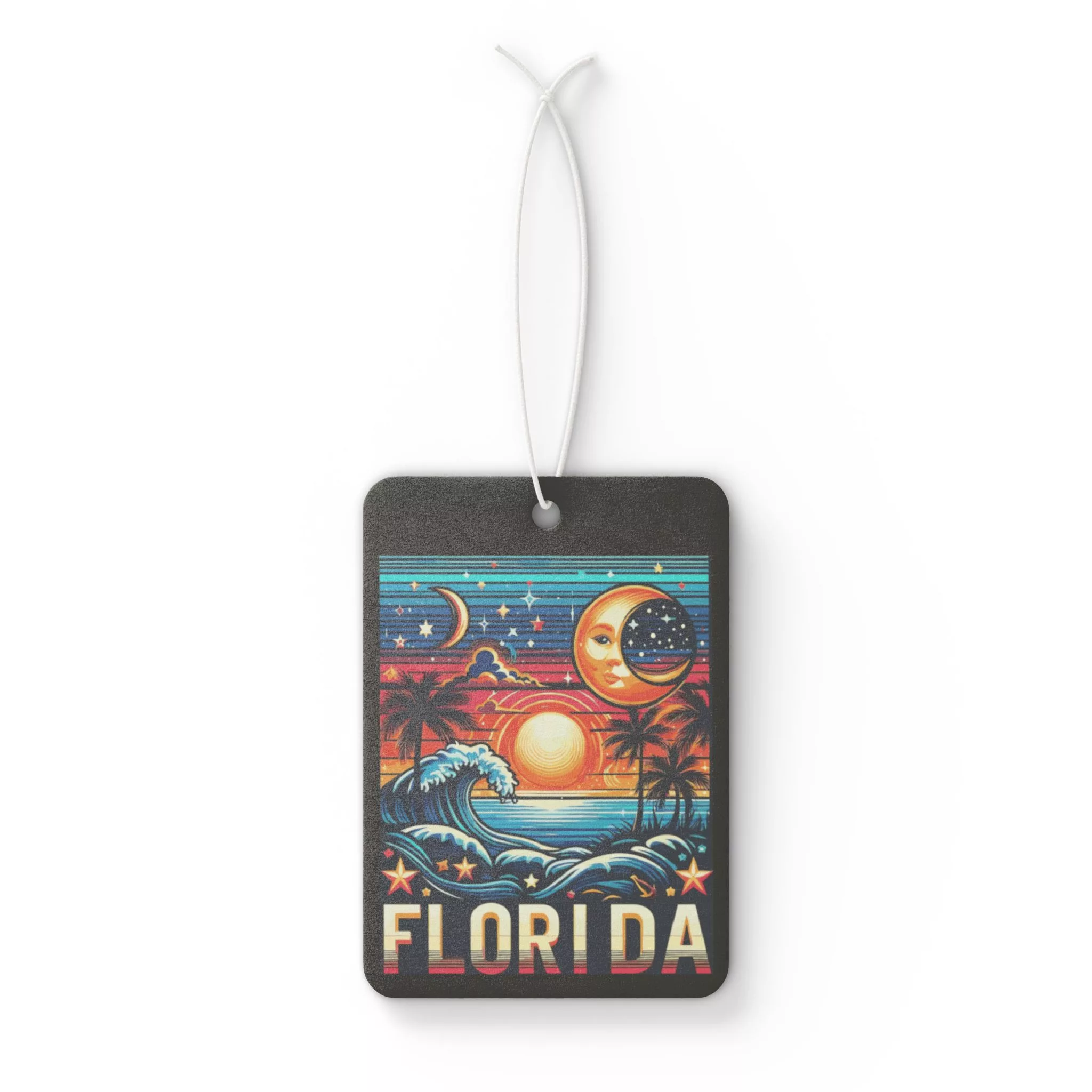 Florida Beach Sunset Moon & Stars (Black) Car Air Freshener