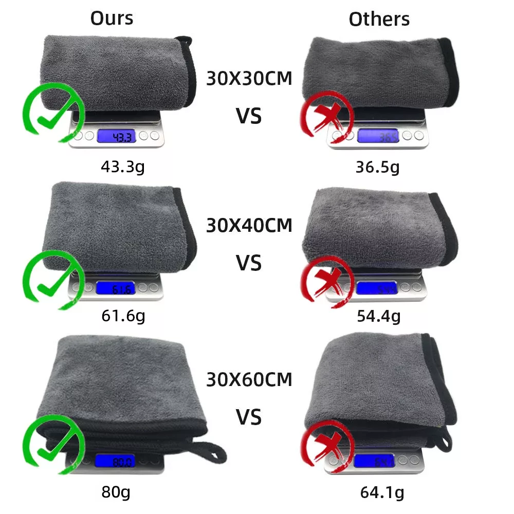 - We provide three different sizes( 30*30cm, 30*40cm, 30*60cm) of microfiber car cleaning cloths, which you can choose according to your needs.